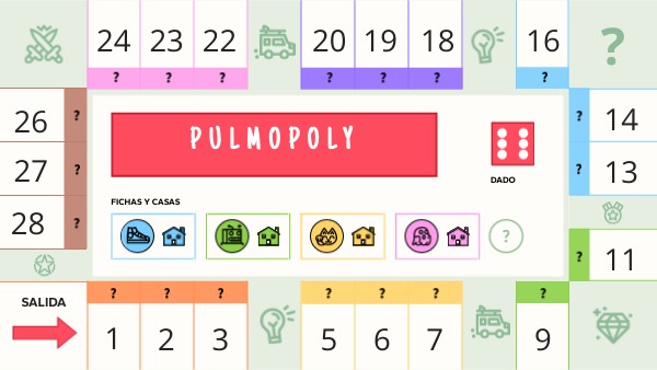 Cada jugador/a debe elegir un color: azul, verde, amarillo o rosa. Así obtiene una ficha para marcar su posición y 10 casas para indicar las propiedades que adquiere a lo largo del juego. Cada jugador debe coger la ficha de su color y colocarla en la casilla de salida. Para empezar a jugar, pincha sobre el dado y mueve tu ficha hasta la casilla que corresponda. En cada casilla debe haber una o varias preguntas. Si la aciertas, coloca una de tus casas en dicha casilla. ¡Enhorabuena, has conseguido una nueva propiedad! Casillas especiales: las casillas con iconos pueden contener BONUS. Si se contesta correcta avanzas 5 casillas y si no se responde correcta se castiga un turno y NO HAY ROBO DE PUNTOS. Ganará aquel jugador/a que tenga el mayor número de casas sobre el tablero una vez que todas las casillas estén ocupadas.