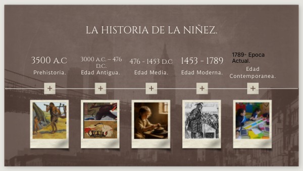 • Pensamiento filosófico: Valoraban a los niños como miembros integrales de la comunidad y no eran seres invisibles porque participaban en la vida de su grupo a través del juego, la exploración y el aprendizaje de la vida cotidiana • Forma de organización social: Evolucionó desde grupos nómadas, como las hordas y los clanes, hasta sociedades sedentarias más complejas como las tribus y jefaturas, • Noción de infancia: Los niños eran considerados miembros valiosos para la comunidad pues los enseñaban a aprender tareas esenciales mediante la observación hacia los adultos y la imitación de sus habilidades • Tipo de educación que recibían: Era principalmente basada en la observación y la imitación de los adultos en su vida diaria, aprendiendo a través de la participación activa en tareas como la recolección, la construcción y la fabricación de herramientas sus padres y la comunidad eran los guías de los niños • Autores de la prehistoria que estudiaron la niñez: Ana María Herrero Corral María Patou-Mathis Mónica Sánchez Romero