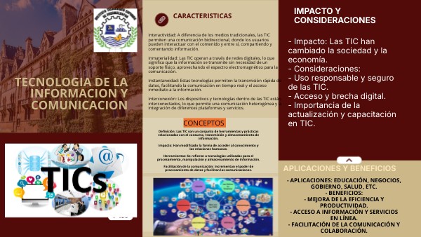- Impacto: Las TIC han cambiado la sociedad y la economía. - Consideraciones: - Uso responsable y seguro de las TIC. - Acceso y brecha digital. - Importancia de la actualización y capacitación en TIC.