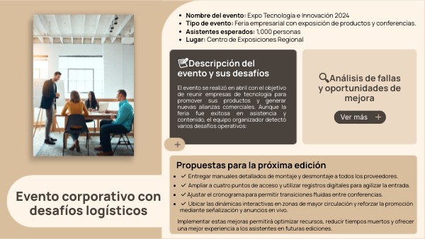 - Tipo de evento: Feria empresarial con exposición de productos y conferencias.