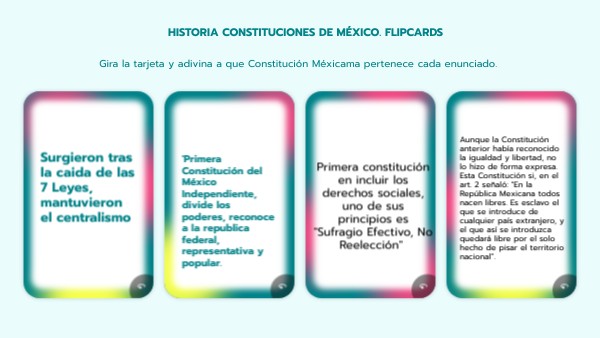 Gira la tarjeta y adivina a que Constitución Méxicama pertenece cada enunciado.