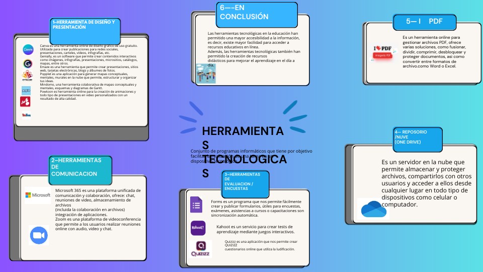 Las herramientas tecnológicas en la educación hanpermitido una mayor accesibilidad a la información,es decir, existe mayor facilidad para acceder arecursos educativos en línea.Además, las herramientas tecnológicas también hanpermitido la creación de recursosdidácticos para mejorar el aprendizaje en el día adía.