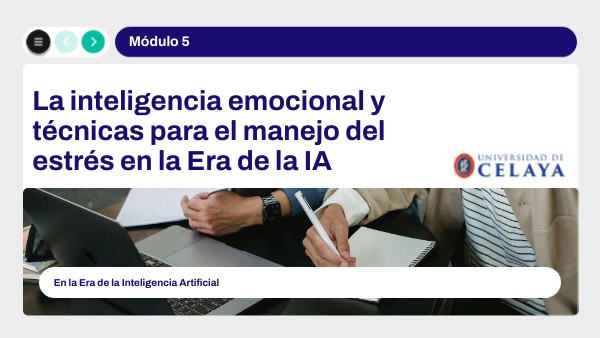Al finalizar este módulo, el particpante será capaz tomar decisiones efectivas para evitar la sobrecarga de estrés al poner en práctica sus habilidades para gestionar sus emociones y establecer mentas, claras y medibles, entre los miembros de un equipo de trabajo multidiscipolnario en la Era de la IA.
