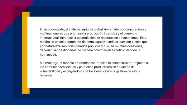 El cambio climático, con sus alteraciones en patrones de lluvia, temperaturas extremas y fenómenos climáticos cada vez más frecuentes e intensos, está afectando directamente la disponibilidad y calidad de ingredientes autóctonos utilizados en las recetas tradicionales y en las prácticas alimentarias de muchas comunidades. La reducción, desaparición o transformación de semillas, plantas medicinales y especies autóctonas tradicionales no solo representa una pérdida de recursos naturales, sino también una amenaza a las prácticas culturales que se han transmitido de generación en generación. Estas prácticas —que incluyen conocimientos sobre el manejo sostenible de la biodiversidad, técnicas de cultivo y uso medicinal, y formas de alimentación basadas en la relación íntima con la naturaleza— están en riesgo de desaparecer.