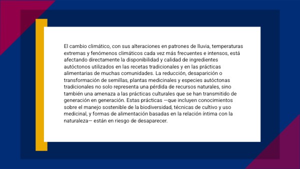 5. Resistencia y alternativas: A pesar de las dificultades, las comunidades crean formas de resistencia, reinventando prácticas de alimentación que preservan saberes tradicionales y fortalecen su autonomía frente a las imposiciones del sistema dominante.