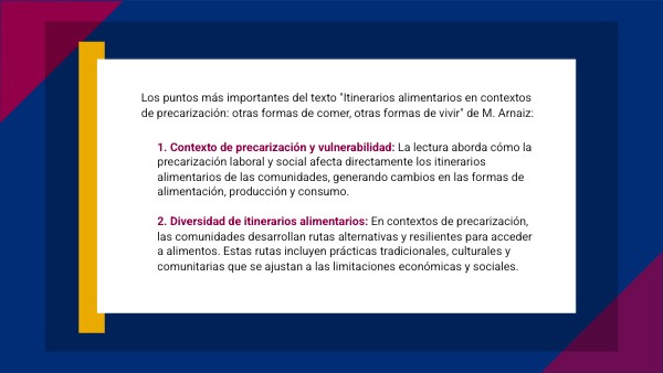 Estas tensiones sobre los medios de producción y los recursos naturales tienen un impacto directo en la seguridad alimentaria y en la salud de las poblaciones, especialmente las más empobrecidas que dependen de estos recursos para su subsistencia. La concentración del poder en manos de grandes corporaciones también afecta la diversidad alimentaria, promoviendo productos homogéneos y ultra procesados en detrimento de las semillas y cultivos tradicionales, que contienen altos valores culturales, históricos y ecológicos. Estos procesos reflejan dinámicas de desigualdad que, además de afectar las condiciones económicas, ponen en peligro el patrimonio bio sociocultural asociado a las prácticas alimentarias tradicionales.