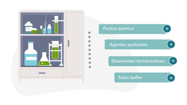 Los disolventes farmacéuticos deben cumplir con las especificaciones de la Farmacopea Europea, mostrando niveles mínimos de agua, peróxidos y metales pesados. Por ejemplo, el etanol absoluto contiene menos del 0,2 % de agua para evitar reacciones de hidrólisis durante el almacenamiento. Además, propiedades como la miscibilidad y la constante dieléctrica influyen en la solubilidad de los reactivos y en la cinética de las reacciones.