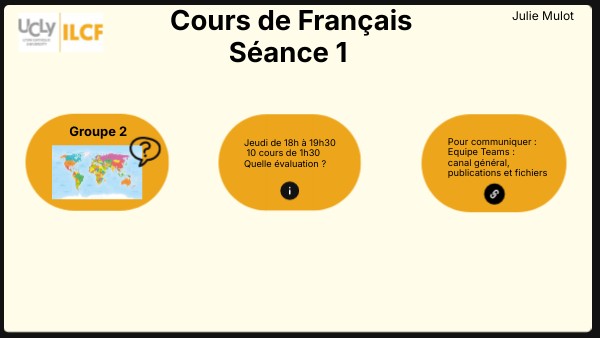 Présentez-vous : prénom, nationalité, domaine d'étude et vos loisirs ! https://padlet.com/juliemu/notre-groupe-2-64jthbbzqzkrt4z9