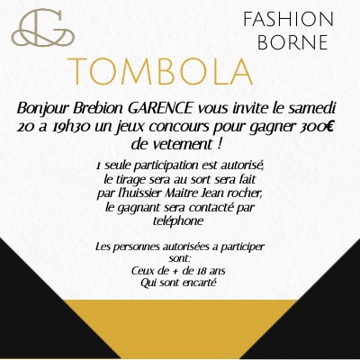 Bonjour Brebion GARENCE vous invite le samedi 20 a 19h30 un jeux concours pour gagner 300€ de vetement !