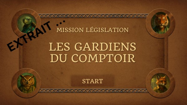 5. Fin de partie : Le premier à atteindre la dernière case après avoir réussi l'ultime épreuve gagne.Le Diplôme du Meilleur ASV de Comptoir À la fin du jeu, l’équipe gagnante reçoit un diplôme personnalisé et imprimable : Design officiel avec le logo de la “Clinique de la Plaine Verte” Sceau doré “Excellence Légale & Réactivité Urgente” Signature du Dr Lemoine et photo fictive Message humoristique type : “Délivreur de Frontline® certifié – Défenseur des bêtes & de la loi” 🧩 Dans Genially : une slide finale spéciale qui s’ouvre automatiquement si l’équipe gagne, avec le diplôme généré via un formulaire.