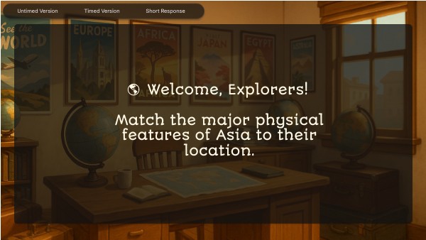 🌎 Welcome, Explorers! Match the major physical features of Asia to their location.