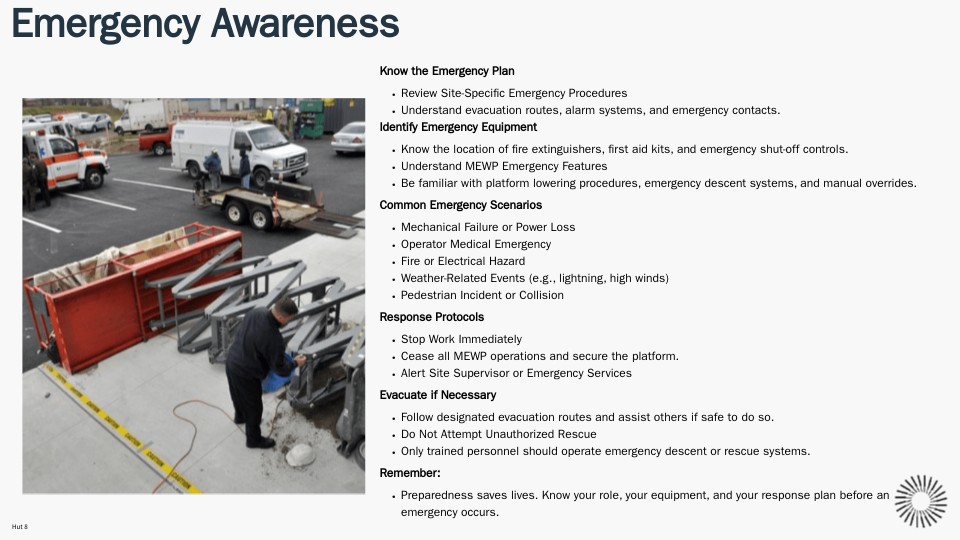 - Understand MEWP Emergency Features