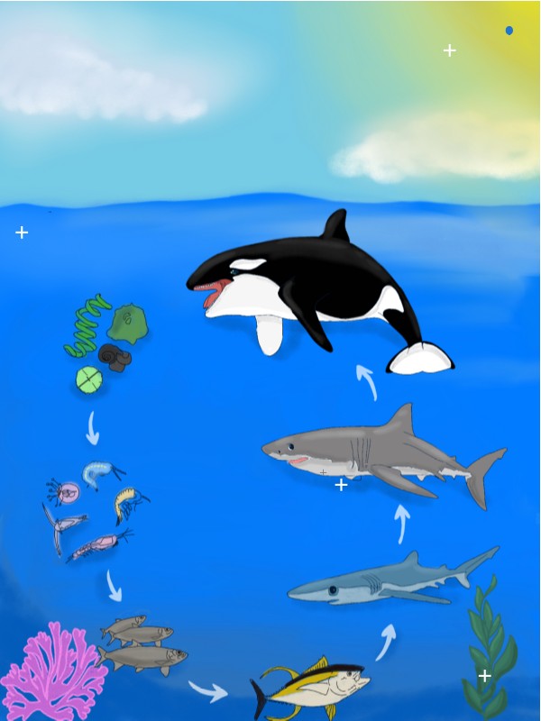 En cada capa se utilizaron distintas herramientas. En las dos primeras, se empleó el bote de pintura para rellenar el mar y el cielo. Posteriormente, se trabajó en una capa adicional para crear los dibujos de los animales. Finalmente, se añadieron más detalles precisos en capas sucesivas.
