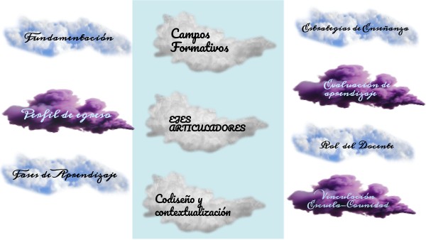 °. Lenguajes: Comunicación, lenguas indígenas, inglés, artes. °. Saberes y Pensamiento Científico: Matemáticas, ciencias, tecnología. °. Ética, Naturaleza y Sociedades: Historia, geografía, formación cívica y ética. °. De lo Humano y lo Comunitario: Educación física, vida saludable, socioemocional.