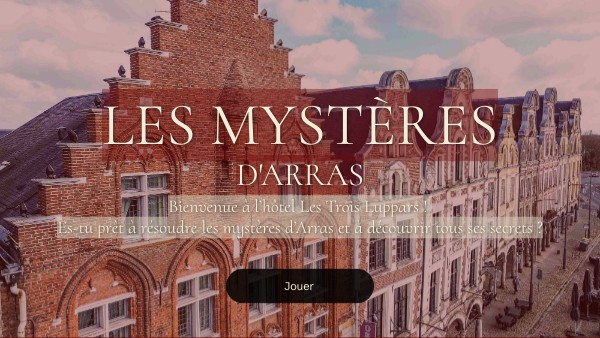 Bienvenue à l’hôtel Les Trois Luppars ! Es-tu prêt à résoudre les mystères d’Arras et à découvrir tous ses secrets ?