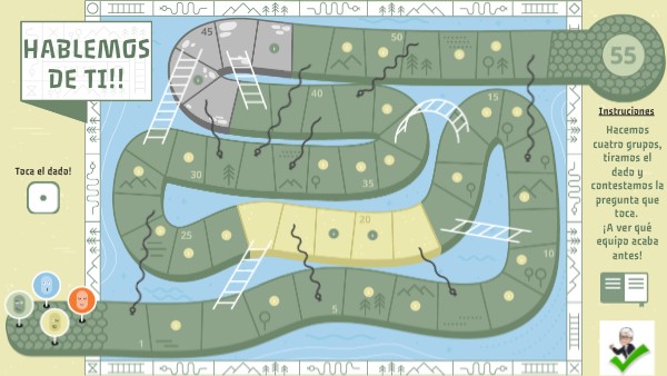 Hacemos cuatro grupos, tiramos el dado y contestamos la pregunta que toca. ¡A ver qué equipo acaba antes!