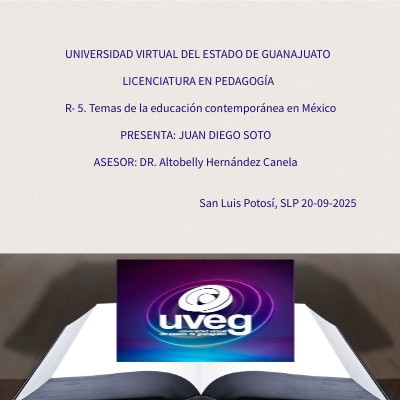 UNIVERSIDAD VIRTUAL DEL ESTADO DE GUANAJUATO LICENCIATURA EN PEDAGOGÍA R- 5. Temas de la educación contemporánea en México PRESENTA: JUAN DIEGO SOTO ASESOR: DR. Altobelly Hernández Canela San Luis Potosí, SLP 20-09-2025