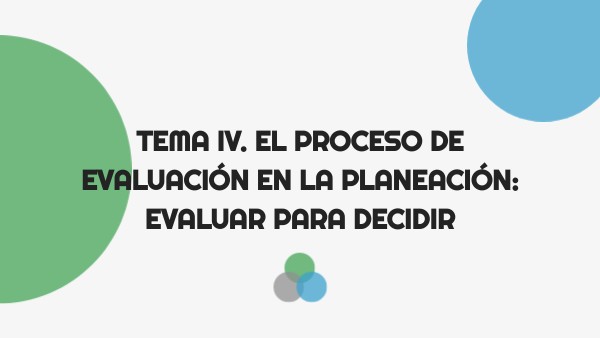 Tema IV. El proceso de evaluación en la planeación: Evaluar para decidir