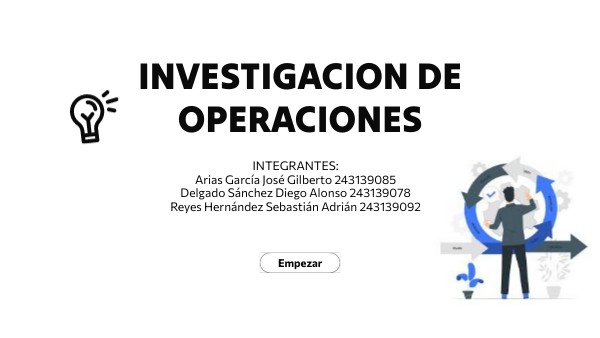 La Investigación de Operaciones (I.O.), también conocida como Investigación Operativa o Ciencia Administrativa, es una disciplina que aplica métodos analíticos, cuantitativos y modelos matemáticos al estudio de sistemas complejos con el fin de tomar decisiones óptimas bajo restricciones. Se utiliza ampliamente en empresas, logística, producción, transporte, finanzas, salud, etc. Su relevancia radica en que permite optimizar recursos limitados, mejorar procesos y aumentar la eficiencia. Resolver problemas en I.O. no es simplemente aplicar fórmulas, sino seguir una metodología estructurada que garantice que la solución propuesta sea viable, aplicable y robusta frente a variaciones en los datos
