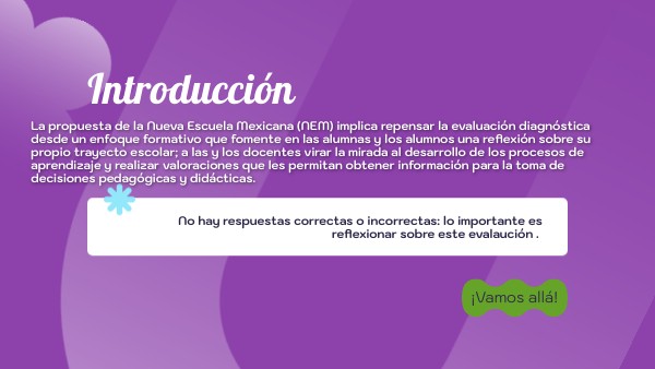 La propuesta de la Nueva Escuela Mexicana (NEM) implica repensar la evaluación diagnóstica desde un enfoque formativo que fomente en las alumnas y los alumnos una reflexión sobre su propio trayecto escolar; a las y los docentes virar la mirada al desarrollo de los procesos de aprendizaje y realizar valoraciones que les permitan obtener información para la toma de decisiones pedagógicas y didácticas.