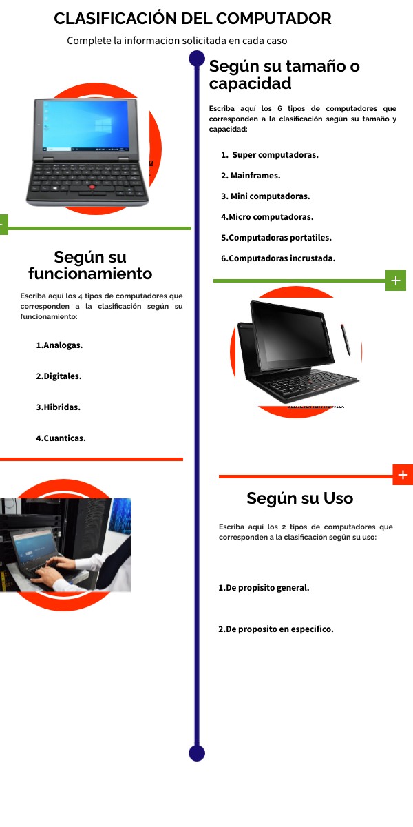 Escriba aquí los 2 tipos de computadores que corresponden a la clasificación según su uso: