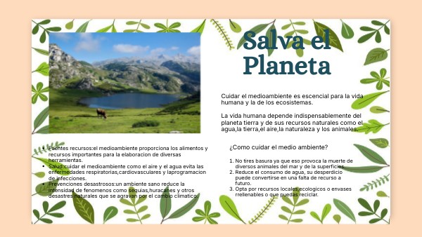 Cuidar el medioambiente es escencial para la vida humana y la de los ecosistemas. La vida humana depende indispensablemente del planeta tierra y de sus recursos naturales como el agua,la tierra,el aire,la naturaleza y los animales.
