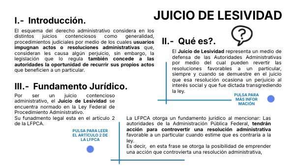 BibliografíaAprendiendo Derecho. (16 de febreo de 2022). Juicio de Lesividad. Obtenido de Dr. Ricardo Tapia Vega. Video. YouTobe Conceptos.es. (s.f.). Lesividad. Obtenido de https://conceptos.es/lesividad Ley Federal de Procedimiento Contencioso Administrativo. (21 de mayo de 2024). Camára de Diputados. LXV Legislatura. CDMX, Ciudad de México, México: D.O.F.