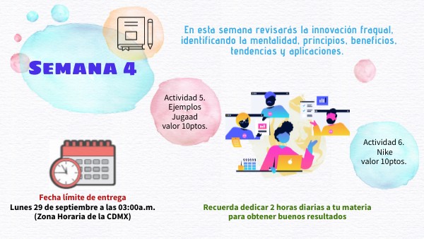 En esta semana revisarás la innovación fragual, identificando la mentalidad, principios, beneficios, tendencias y aplicaciones.
