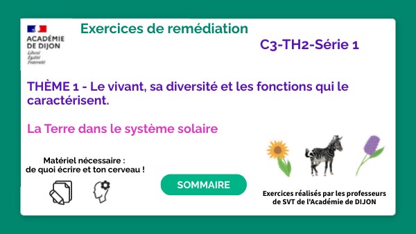 THÈME 1 - Le vivant, sa diversité et les fonctions qui le caractérisent. La Terre dans le système solaire