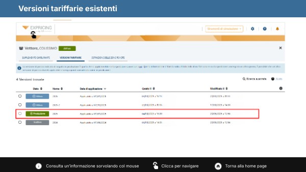 Versioni tariffarie esistenti