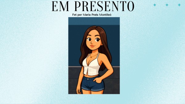 Em dic Maria Prats Montlleó i tinc catorze anys. Em considero una persona amable, sociable i divertida. Sempre somric i ric per gairebé tot, però també sé posar-me seriosa quan la situació ho requereix. M’encanten els animals: tinc un gos i dos gats, i no sabria què fer sense ells. També tinc dos germans, un de gran i un de petit, que són molt importants per a mi i valoro molt tenir-los.