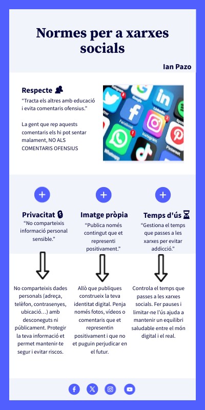 Allò que publiques construeix la teva identitat digital. Penja només fotos, vídeos o comentaris que et representin positivament i que no et puguin perjudicar en el futur.