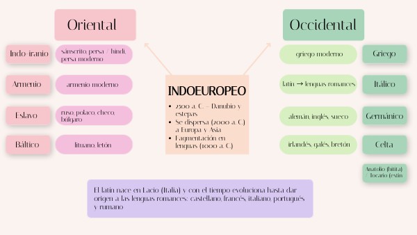 El latín nace en Lacio (Italia) y con el tiempo evoluciona hasta dar origen a las lenguas romances: castellano, francés, italiano, portugués y rumano