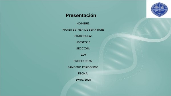 Nombre: maria esther de sena Rubi Matricula: 100517710 Seccion: Z09 pROFESOR/A: Sandino perdonmo fECHA: 19/09/2025