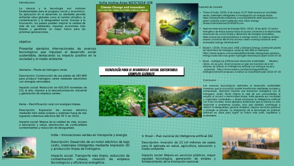 objetivo: Presentar ejemplos internacionales de avances tecnológicos que impulsan el desarrollo social sustentable, destacando su impacto positivo en la sociedad y el medio ambiente.