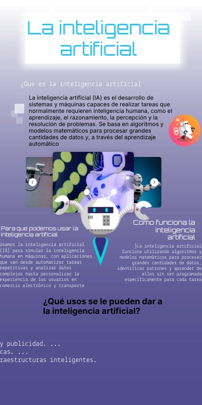 La inteligencia artificial (IA) es el desarrollo de sistemas y máquinas capaces de realizar tareas que normalmente requieren inteligencia humana, como el aprendizaje, el razonamiento, la percepción y la resolución de problemas. Se basa en algoritmos y modelos matemáticos para procesar grandes cantidades de datos y, a través del aprendizaje automático
