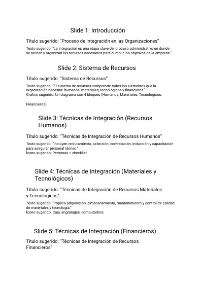 Texto sugerido: “La integración es una etapa clave del proceso administrativo en dondese reúnen y organizan los recursos necesarios para cumplir los objetivos de la empresa.”