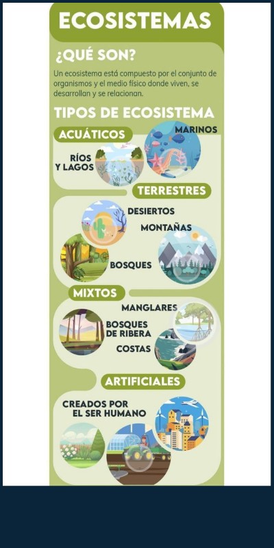 Los ecosistemas montañosos se definen por altitud, la cual influye drásticamente en el clima (menor temperatura, más viento y radiación solar), generando una diversidad de hábitats que va desde bosques en las faldas hasta praderas y nieve en las cumbres. También se caracterizan por una flora y fauna específicas adaptadas a estas condiciones, el rol fundamental como fuente de agua dulce y la presencia de suelos expuestos con riesgo de erosión.