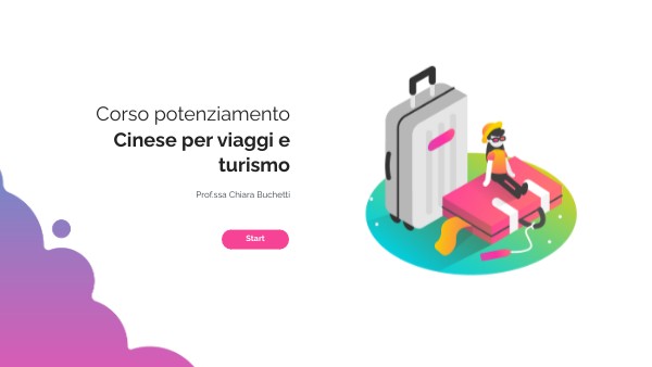 旅游 lǚyóu Viaggio, turismo 旅行 lǚxíng Viaggiare 行程 xíngchéng Itinerario 身份证 shēnfènzhèng Carta d’identità 行李箱 xínglixiāng Valigia 背包 bēibāo Zaino 衣服 yīfu Vestiti 洗漱用品 xǐshù yòngpǐn Articoli per l’igiene 礼物 lǐwù Regalo 规则 guīzé Regole 饭菜 fàncài Pasti, cibo