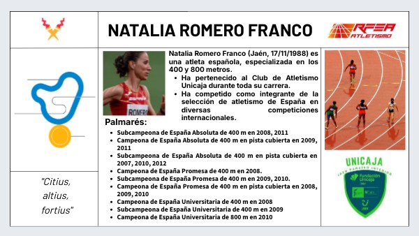 Natalia Romero Franco (Jaén, 17/11/1988) es una atleta española, especializada en los 400 y 800 metros.
