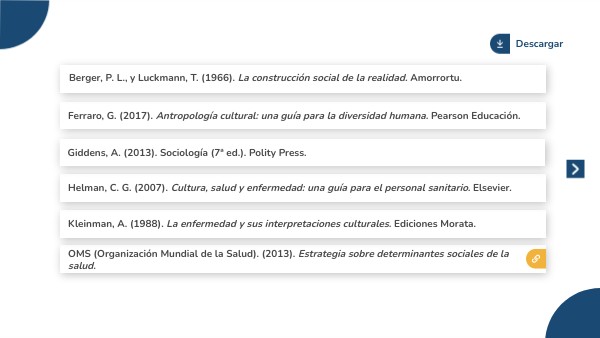 Helman, C. G. (2007). Cultura, salud y enfermedad: una guía para el personal sanitario. Elsevier.