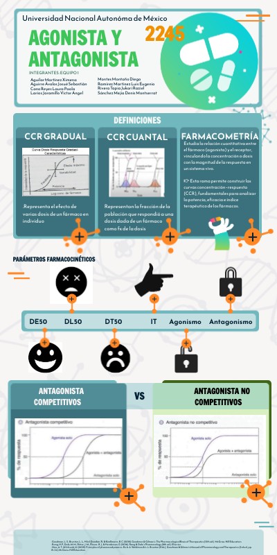 - Goodman, L. S., Brunton, L. L., Hilal-Dandan, R., & Knollmann, B. C. (2018). Goodman & Gilman’s: The Pharmacological Basis of Therapeutics (13th ed.). McGraw-Hill Education.- Rang, H. P., Dale, M. M., Ritter, J. M., Flower, R. J., & Henderson, G. (2016). Rang & Dale’s Pharmacology (8th ed.). Elsevier. - Nies, A. T., & Schwab, M. (2019). Principles of pharmacodynamics. En A. A. Waldman & L. L. Brunton (Eds.), Goodman & Gilman’s Manual of Pharmacology and Therapeutics (3rd ed., pp. 19–34). McGraw-Hill Education.