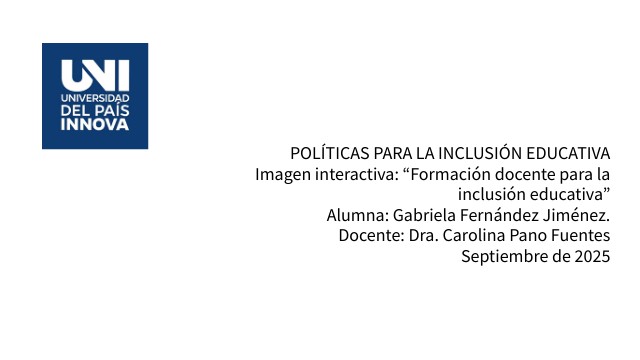 POLÍTICAS PARA LA INCLUSIÓN EDUCATIVAImagen interactiva: “Formación docente para la inclusión educativa”Alumna: Gabriela Fernández Jiménez. Docente: Dra. Carolina Pano Fuentes Septiembre de 2025