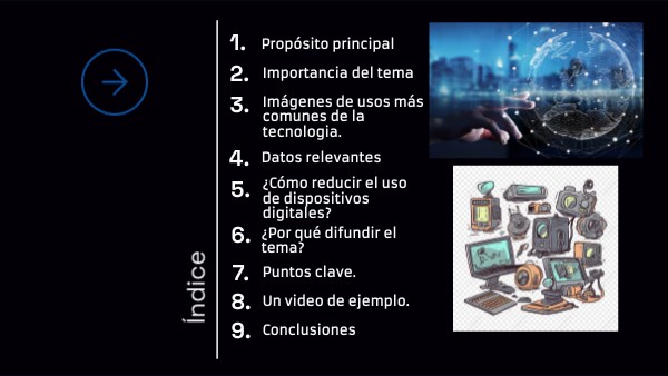 "El objetivo de este tema es crear conciencia sobre la reducción del uso de tecnologías en personas de todas las edades, debido a los riesgos en la salud que conlleva su prolongado uso."