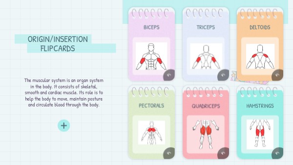 The muscular system is an organ system in the body. It consists of skeletal, smooth and cardiac muscle. Its role is to help the body to move, maintain posture and circulate blood through the body.