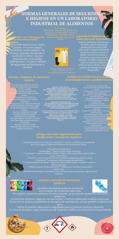 Autor(es) corporativo(s). Universidad Nacional Autónoma de México. (2020). *Manual de seguridad para laboratorios de química*. Facultad de Química, UNAM. [https://www.quimica.unam.mx/wp-content/uploads/2020/02/Manual-Seguridad-Laboratorios-FQ-UNAM.pdf](https://www.quimica.unam.mx/wp-content/uploads/2020/02/Manual-Seguridad -Laboratorios-FQ-UNAM.pdf Occupational Safety and Health Administration. *Laboratory safety guidance*. U.S. Department of Labor. [https://www.osha.gov/chemical-safety/standards/laboratory]* Sistema Globalmente Armonizado de Clasificación y Etiquetado de Productos Químicos (SGA)* (9a ed.). [https://unece.org/ghs-rev9-2021](https://unece.org/ghs-rev9-2021) Agencias Reguladoras de Salud y Seguridad Agencia Europea de Sustancias y Mezclas Químicas.
