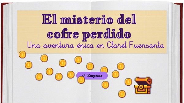Una mañana, en Claret Fuensanta, el sol entra a través de los cristales polvorientos y dibuja rayos de luz sobre montones de libros viejos y cajas olvidadas. Entre telarañas y baúles, encontráis un cofre antiguo cubierto de polvo y con curiosos grabados en la tapa. Al tocarlo… ¡el candado se abre solo! Dentro hay un mapa viejo, amarillento y con bordes desgastados, y una nota que dice: “Quien siga este camino encontrará un valioso tesoro que deberá proteger”.