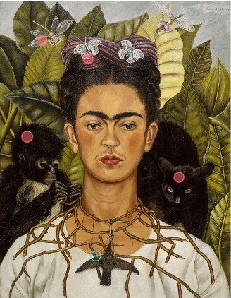 Le collier de Frida Kahlo présente un colibri noir mort, dont les ailes rappellent ses sourcils.