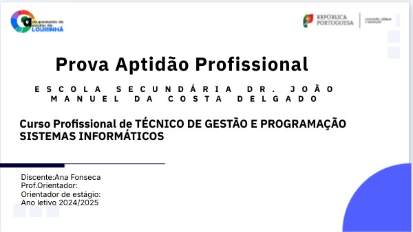 No âmbito do Curso de Infórmatica e sistemas Informáticos desenvolvi a Prova de Aptidão Profissional (PAP).