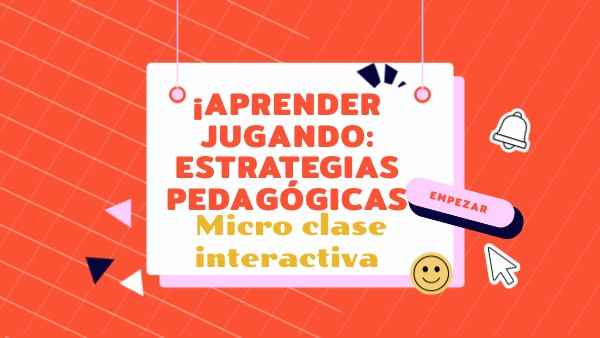 “¡Hola! Bienvenidos a esta micro clase titulada Aprender jugando. Hoy vamos a descubrir cómo el juego puede convertirse en una herramienta poderosa para enseñar y aprender en la escuela primaria. ¡Explora las secciones dando clic en los botones y comienza tu recorrido!” ¡Prepárate para divertirte! 🎉
